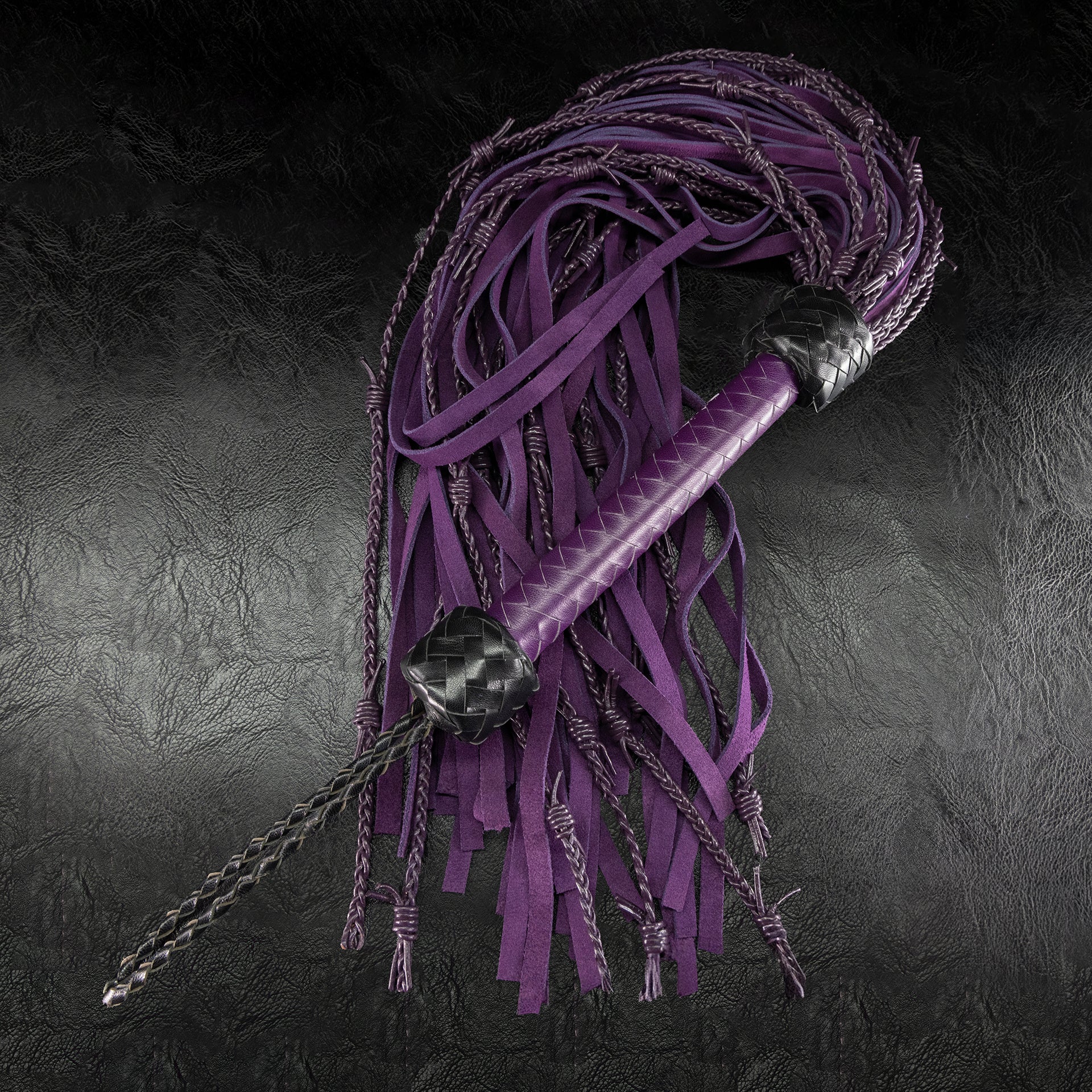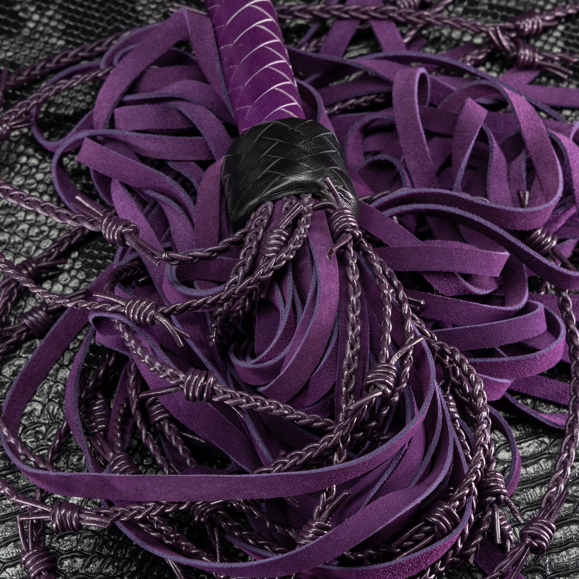 The next big thing in mind fuckery is here, the barbed wire flogger by Kink. What you’ll see is sharp terrifying barbed wire, but what you’ll feel is buttery soft falls. This flogger is made with 100% genuine calf leather and has two different types of falls to give you the standard flogger satisfaction you crave. Tease softly along the skin or give it a full swing for a delicious thwack upon impact. This flogger’s weight is well balanced and just light enough to keep going to your heart's desire.