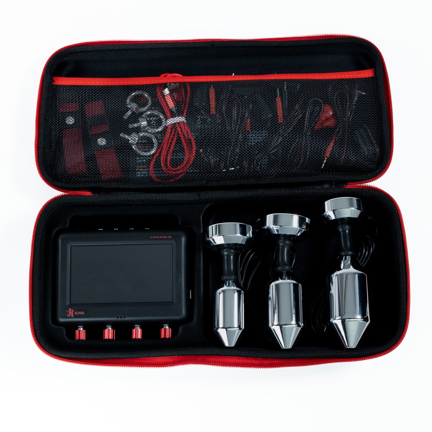 Jump into the deep end with the confidence of a solid, safe and reliable kit. This kit includes Kink's flagship K250-4S E-stim power box along with an assortment of anal plugs, cock electrodes and everything needed to create a satisfying e-stim experience.