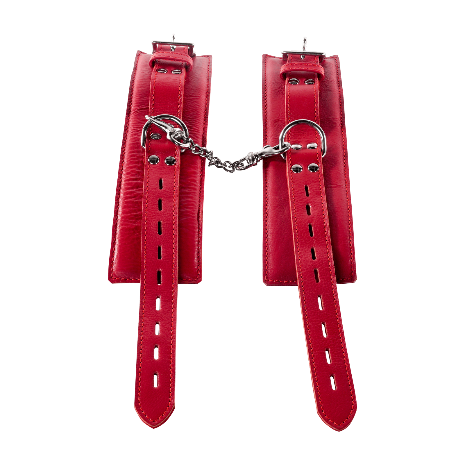 Thigh Cuffs: Dimensions: Fits thighs 14" (35.6cm) to 22" (55.9cm) 2.5" (6.35cm) wide, 1" (2.5cm) D-rings