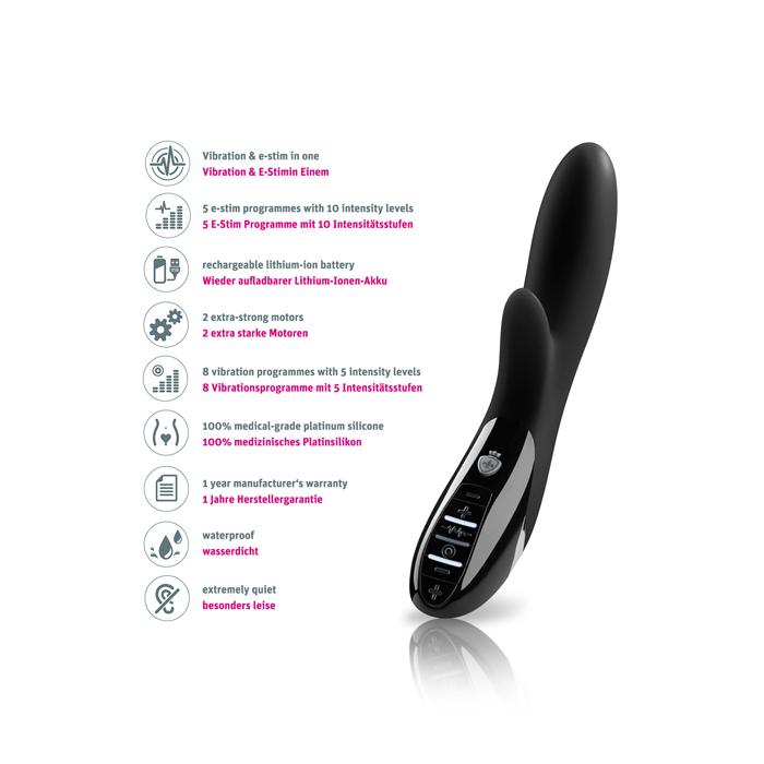 Your cry for love will be heard: Daring Danny is here and ready to stimulate you clitorally and pamper you with vibration and stimulation at the same time. Because double is just better. Without any electrical device or cable, the all-rounder vibrates, tickles and pulsates with pleasure inside you. The smooth 27 cm long and up to 4.3 cm wide silicone body of this e-stim vibrator makes you tremble wonderfully - you get as hot as lava. Heart, you can have no more.
