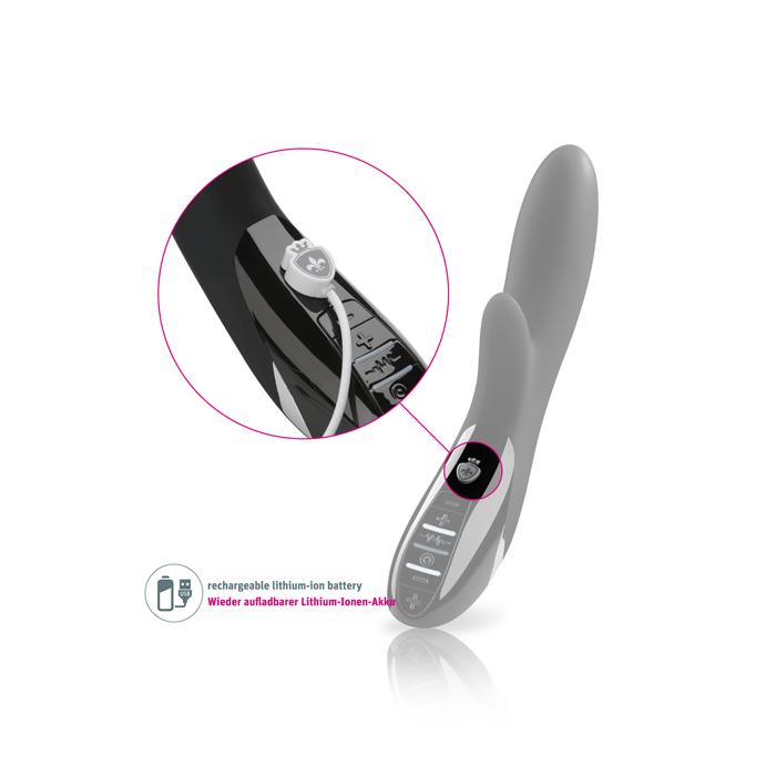 Daring Danny has two sources of vibration: one in the tip and one in the shaft. With 8 different programs and 5 different strengths, the two play together quite skilfully. United they do their best to find the most varied way to drive you to ecstasy.
