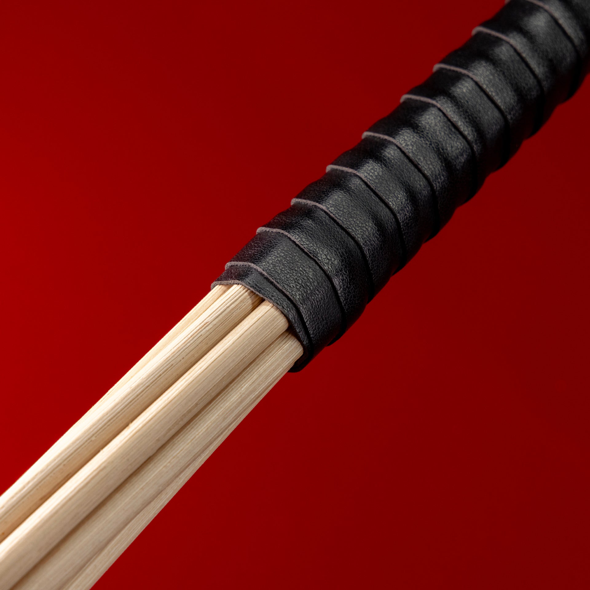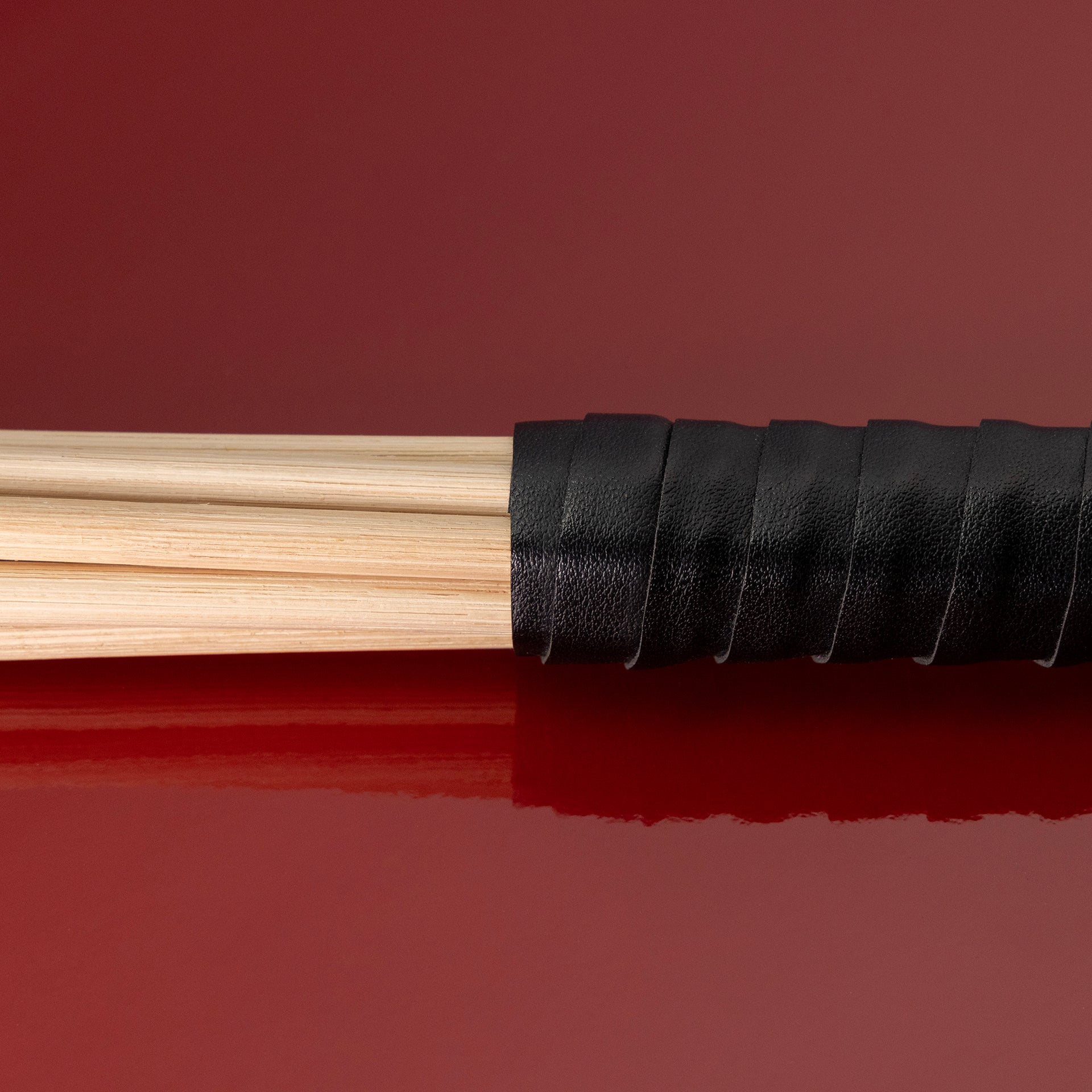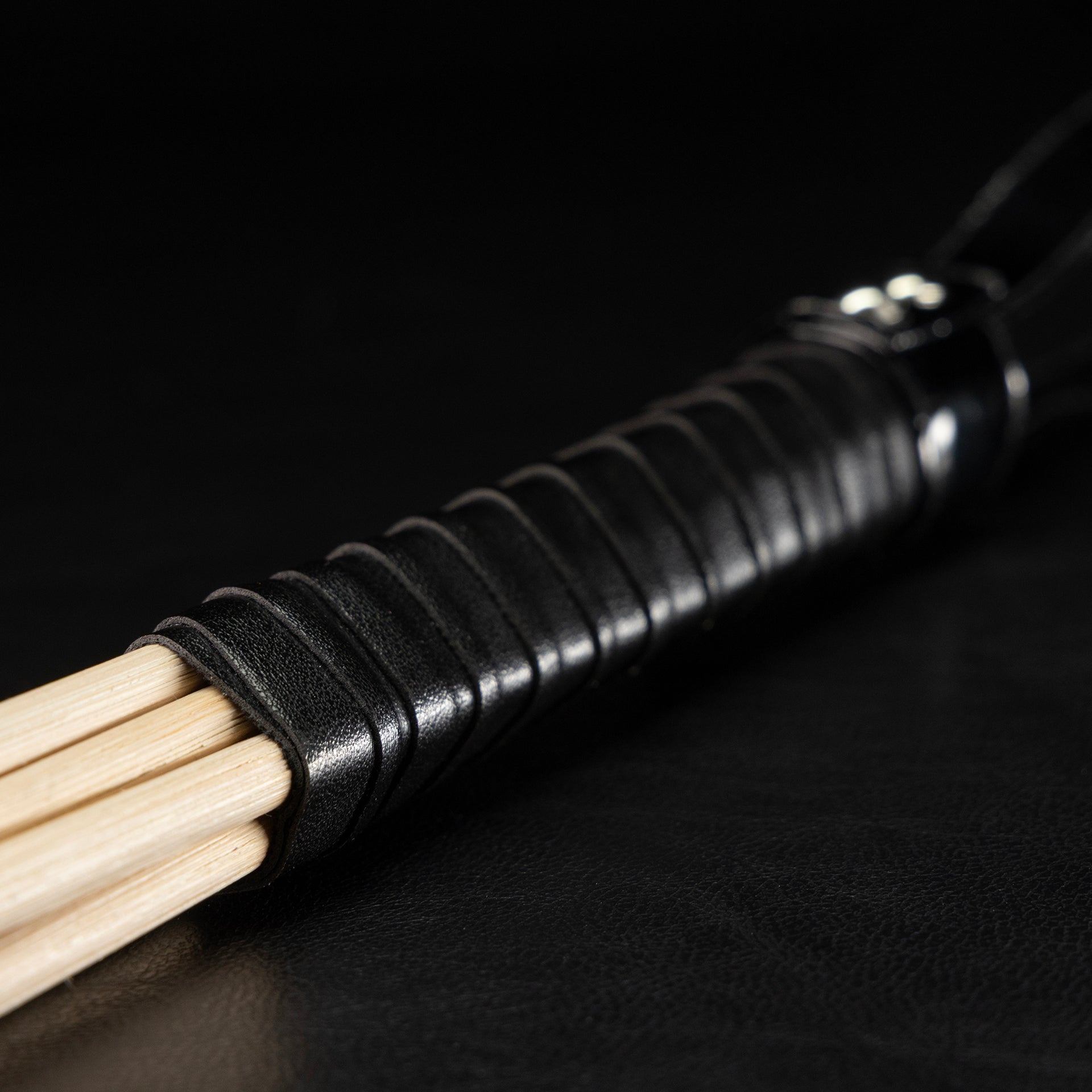 Experience the unique sensation of bundled rattan with this expertly crafted multi rod spanking cane. The Slap Stick features eight individual rattan rods bound together with a leather-wrapped handle, creating a distinctive implement that delivers sharp, surface-level sensations.