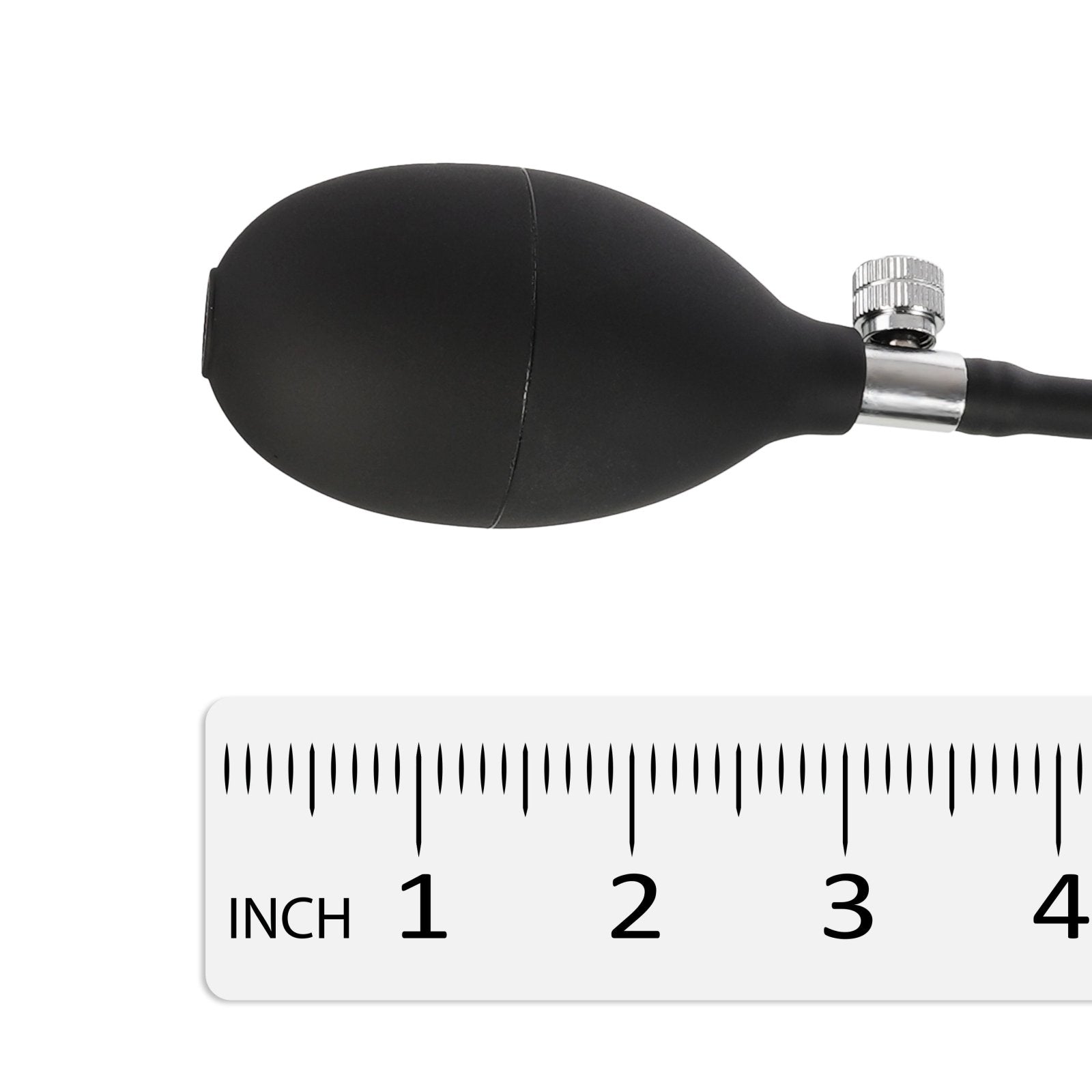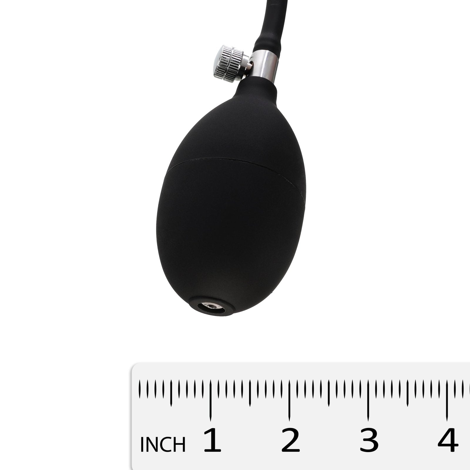 The Inflatable Butt Plug by Kink is the fully customizable butt plug of your dreams. Made from silky soft silicone the plug can be anywhere from 1 ½ inches wide, to a whopping 6 inches when fully inflated! Great for beginners and advanced anal play users alike, you’ll love finding out what new limits you can reach with small interval increases. To aid with insertion while deflated there’s an inch wide steel ball encased in the plug. To deflate, the hand pump has to be attached, either left in or reattached.