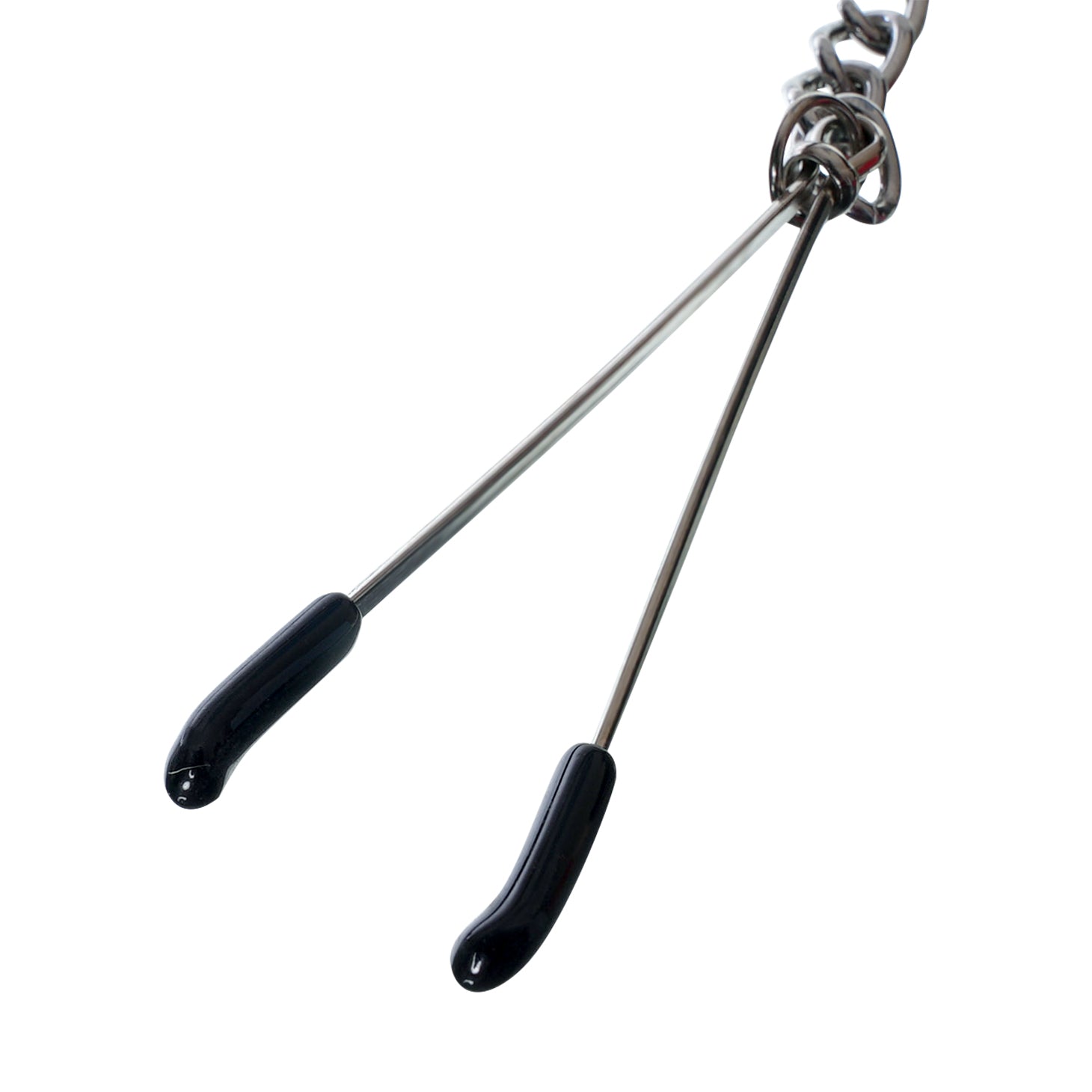Perk up your nipples for your own pleasure or your partner’s with these basic but never boring tweezer-style clamps. Great for beginners; just slide the adjuster to create mild to more intense sensation. Coated ends prevent unwanted pinching. A single silver chain links the clamps and adds jewelry-style flair.