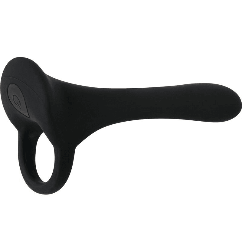 Give yourself an armored advantage with this unique cock ring that stands alongside your member to add strength and girth for more intense couple’s play. Made from creamy smooth silicone, the flexible shaft moves with your body and gives you and your partner a choice of twenty different speeds and functions for a custom experience. Enjoy this toy in the bath or shower as it’s completely submersible, and recharge anytime so your pleasure never runs out! Cock ring with long bullet Perfect for adding girth to couples play Flexible shaft moves with your body Made from creamy smooth silicone 20 powerful vibrating functions Blue LED light in button for stylish visibility Height: 5.53”, Depth: 2.77”, Width: 1.7” Weight: 2.5 oz Waterproof & submersible Phthalate & latex free Rechargeable, USB cable included