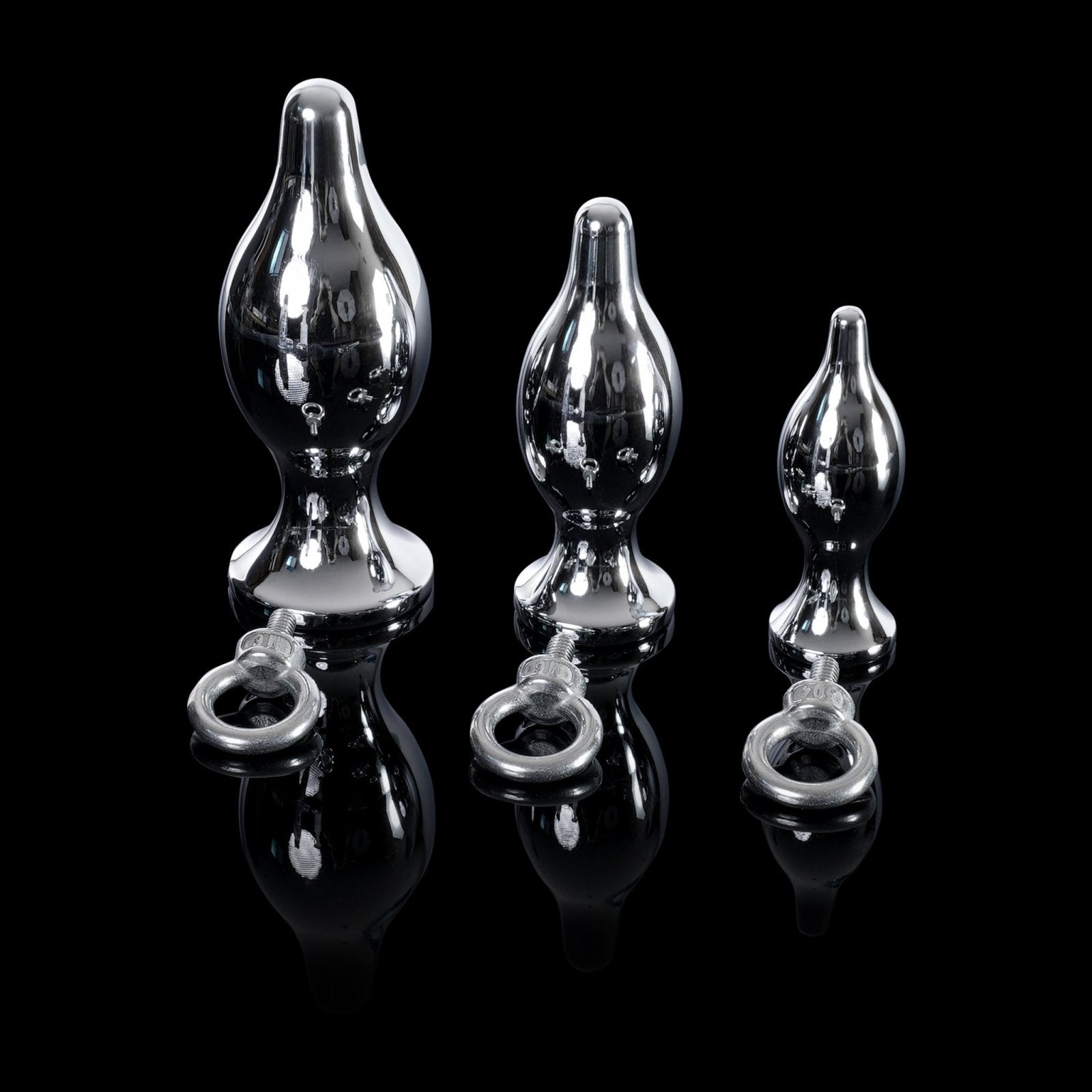 Awaken all those sensitive nerve endings in your anal area with this sleek and sculptural metal butt plug. Its distinctive tapered tip allows for easier insertion, while the removable ring eases removal.