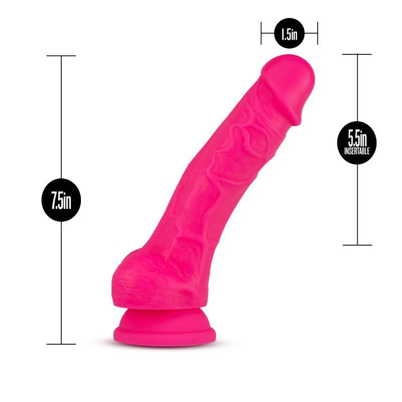 The Neo Elite 7.5 Inch Silicone Dual Density Cock with Balls will light up your playtime with its bright colors and lifelike feel! Neo Elite dildos feature SENSA FEEL® dual density technology—a soft outer layer over a firm inner core, for an ultra-realistic feel. The Neo Elite 7.5 Inch delivers a comfortable average length and loads of realistic detail for extra sensation. Its suction cup base will hold fast to any smooth, flat surface, plus it's harness compatible and safe for anal play. Neo Elite's 100% platinum cured silicone is body safe and offers a delicious satin smooth finish. Ultrasilk™ smooth and made with Puria™ silicone.7.5 Inch Length (5.5 Inch Insertable) x 1.5 Inch WidthSensa Feel - Dual Density ConstructionSuction Cup Base, Harness CompatibleRealistic DetailMade from Satin Smooth, Body Safe Silicone. Contains no Fragrances, Phthalates, Paraffins or Latex