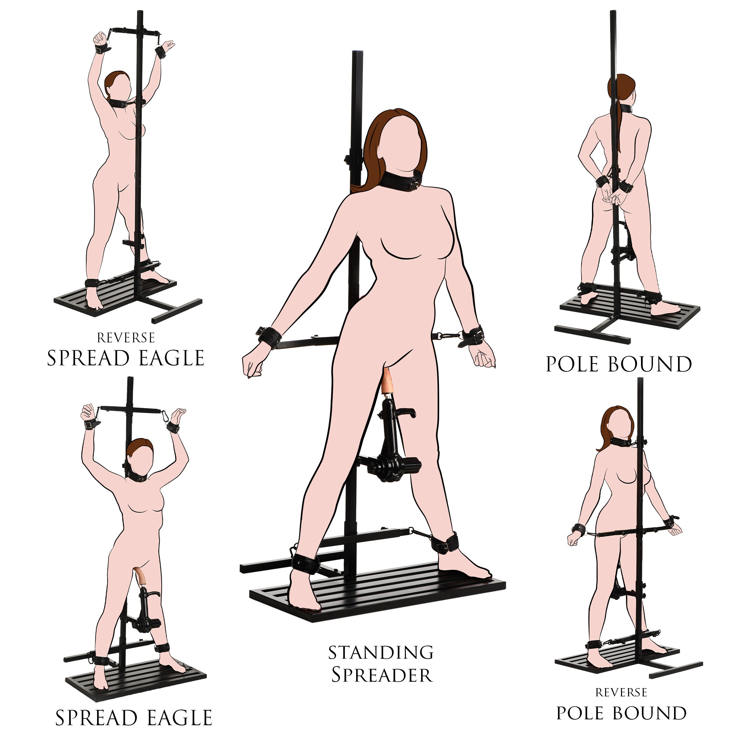 • Adjustable Tower: Adjust the height of the tower! Adjust the sex machine height, ankle and wrist bar widths, collar height, and overall height!