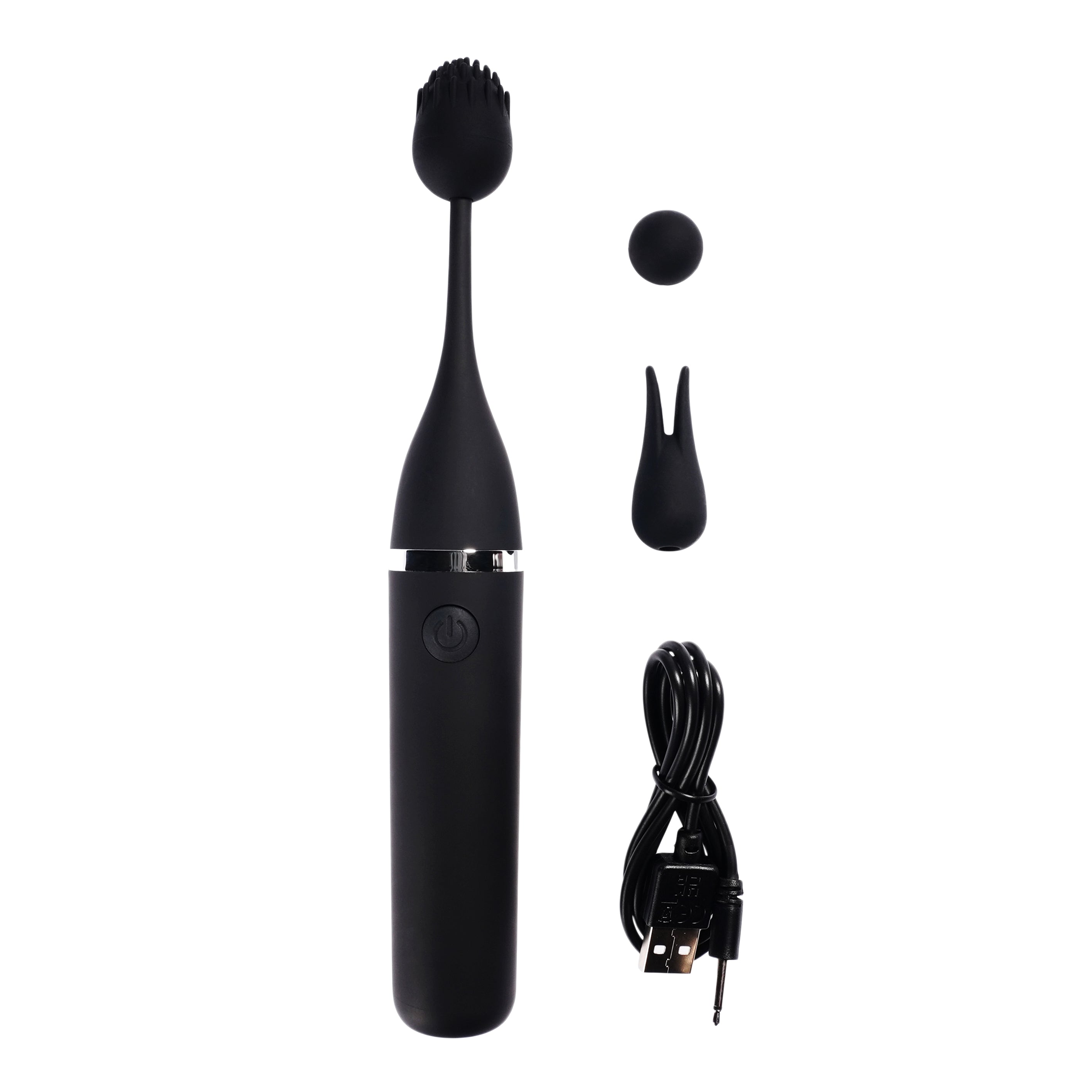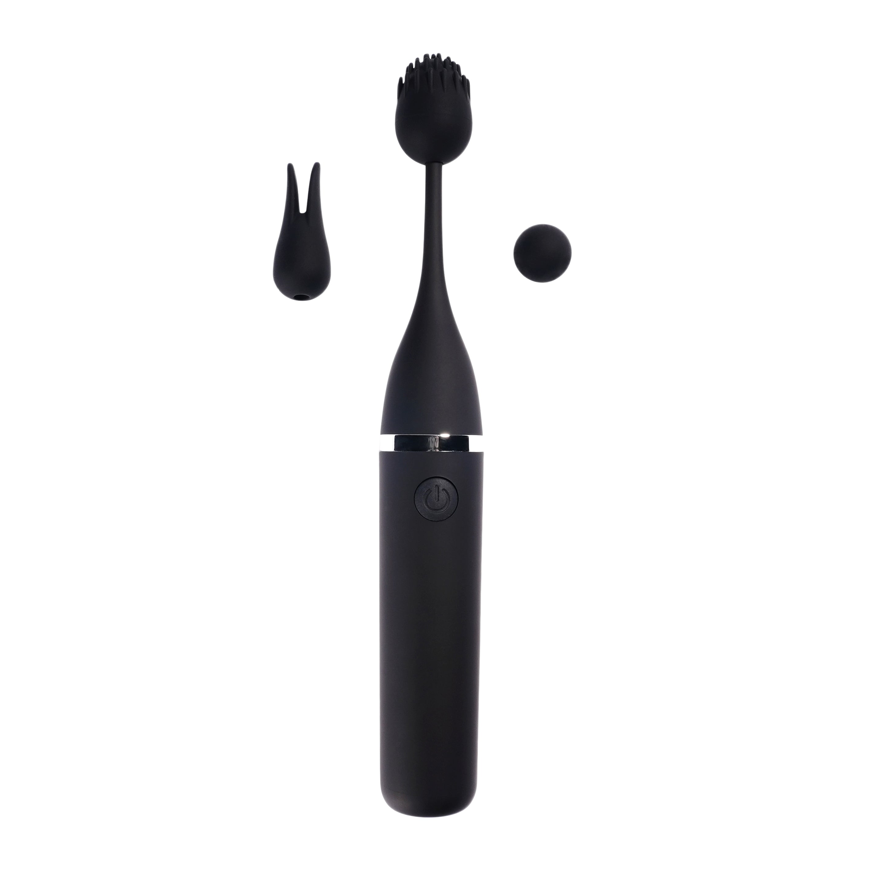 Three swappable silicone heads in a variety of shapes and sizes pop on and off easily. For an even more intense and precise vibration experience, try it with no silicone attachment at all.