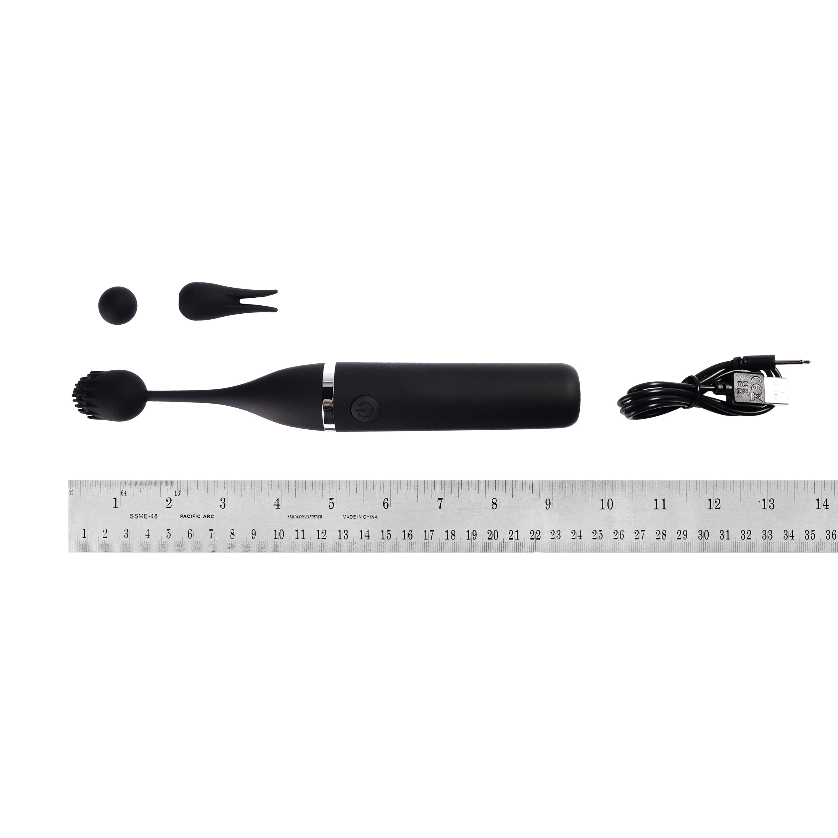 - Vibrator: 8” long x 1” in diameter