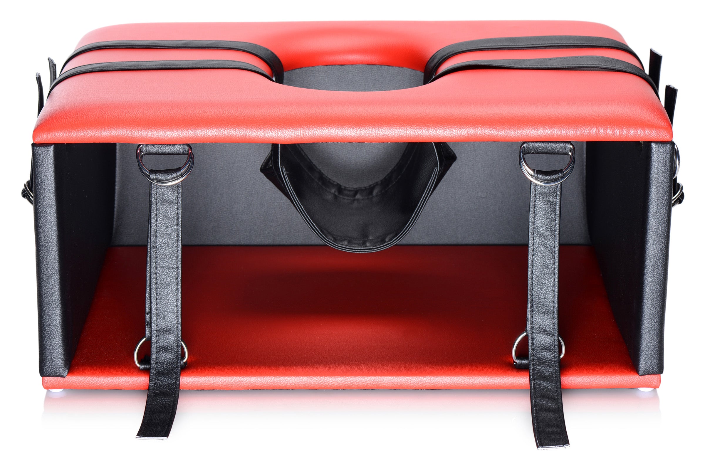 Perfect for cunnilingus, analingus, and tea-bagging, this smother box is topped by a comfortable cushion so that you can sit back and relax while you are licked and sucked. Read a book, carry on a conversation, or enjoy a meal while your submissive enjoys one beneath you. If you are feeling extra wicked and attentive you can tease and torment the exposed body lying supine beneath you.