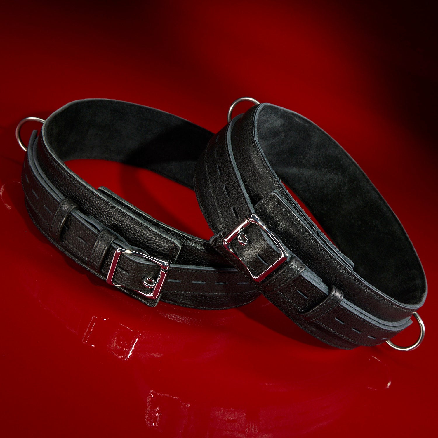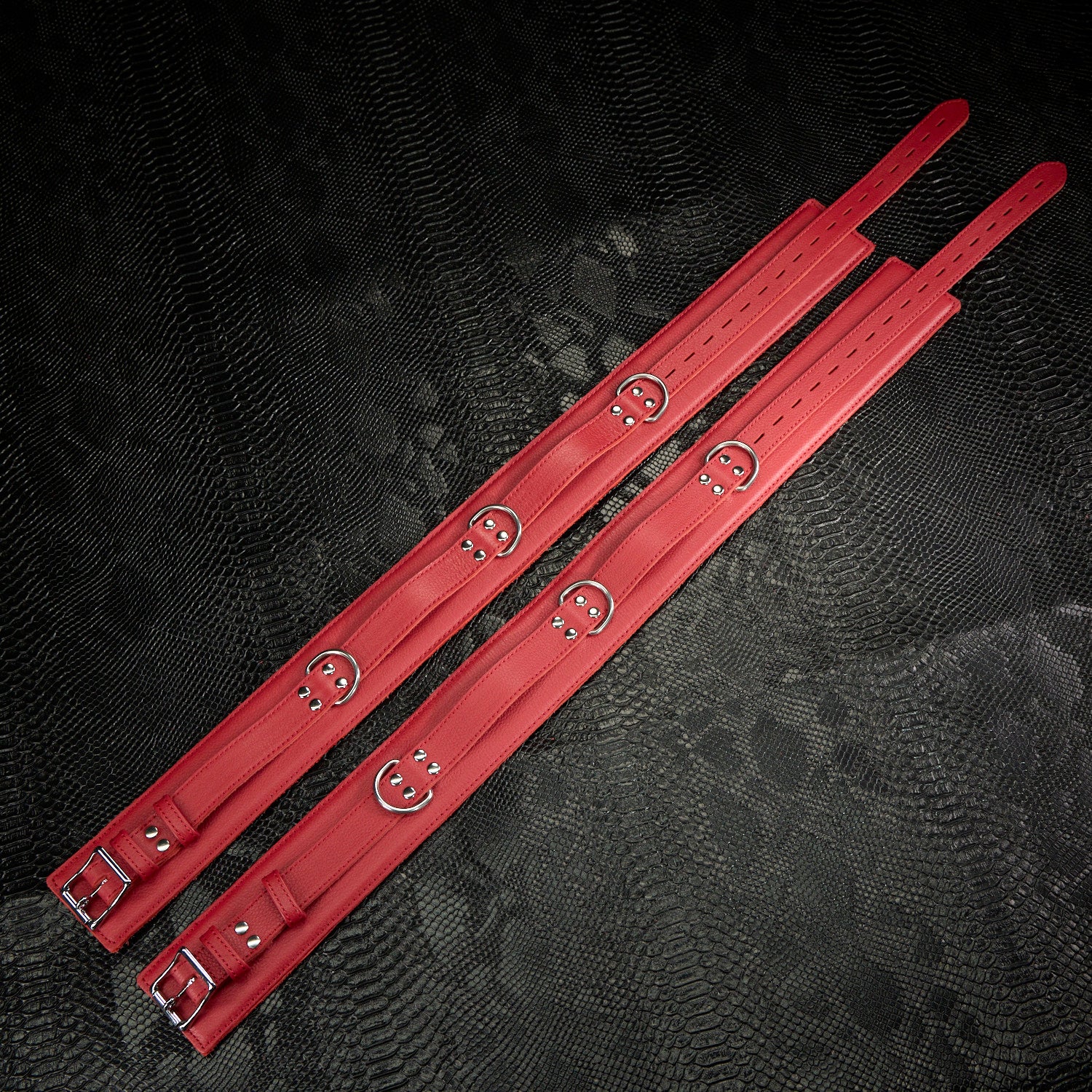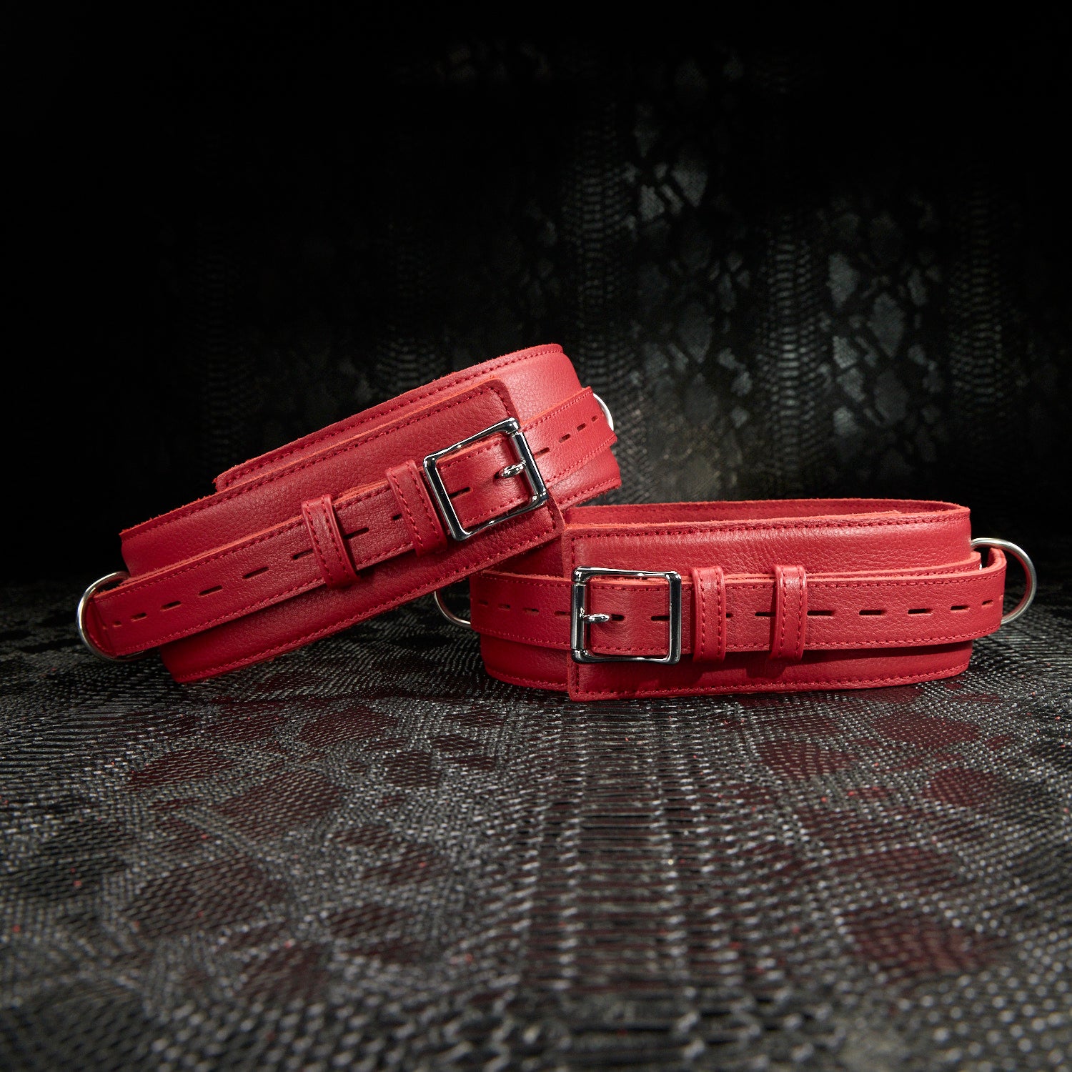 The Submission Bondage Set is a seriously hot leather restraint set guaranteed to take your restraint play to the next level.